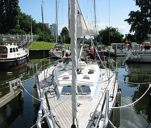So we had to move our boat again ... and we did ... with some trouble since this was the first time on the trip going into a berth in broad daylight without being dragged by friendly Germans. But we succeeded in the second attempt after lying almost sideways in the first. Good thing it was a nice big berth.