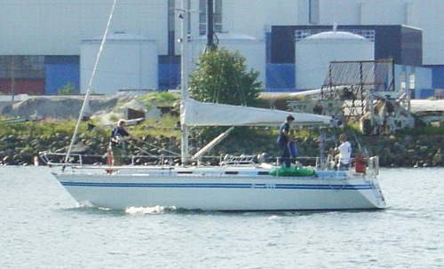 In the evening Per came and we went out for a sail in Aabenraa fjord with him where we for the first time tried the spinnaker and what a beautiful sight it was. A big white balloon with the blue Bianca stripes out front. Really, really nice. Otherwise the main event in Aabenraa was the shower we all took for the first time.