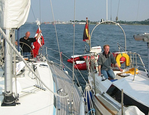 Departed from Heiligenhafen. Wind is about 6 ms. We fuelled up after asking for directions from the Germen next door. He knows everything, at least that is what his well trained wife told us that. On the way to Ærø Claus predicting a good day - obviously not basing this on past experience.