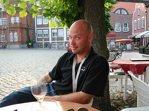 And so we headed out for the city. In short time we found a supermarkt and what do you know, right there next to it was a bar. We could surely use a cold beer by now so we checked the opening hours of the supermarkt and sat down at the bar. Within 20 minutes the sky changed and the rain started pouring down so we had to get another beer. Half an hour later we entered the supermarkt. It was fairly large and we headed for the beer section - and what do you know - we'd found a beerless supermarkt in Germany. What's up with that? Asking for directions, "jah jah, diesen weg, durch dem gang dann links, über und so weiter, der SKY super" ... right around the corner I guess.